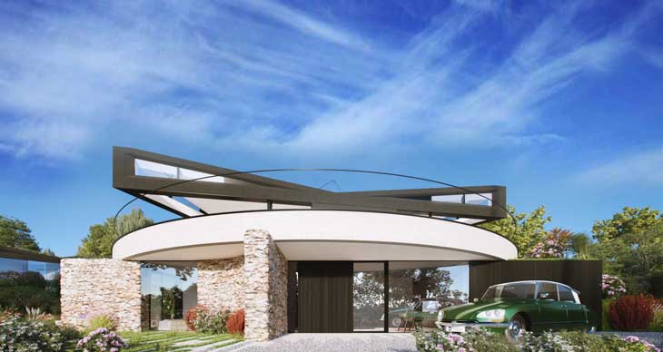 英国建筑师David Ben-Grunberg和Daniel Woolfson合作完成了德文郡一座建筑的改造。D住宅特点是其屋面可以旋转。业主将其视作是下一代住宅的象征,Dynamic D Haus于2012年问世,设计旨在回应当下季节和天气条件的变化。名为“德文住宅”的新方案的旋转屋面旨在符合业主晚年生活流动性降低的特点。耗资300万英镑大大超过了200万的预算,因此设计师必须做出一些改动,提供更低廉、稳定的设计版本,已于今年4月获得了规划许可。