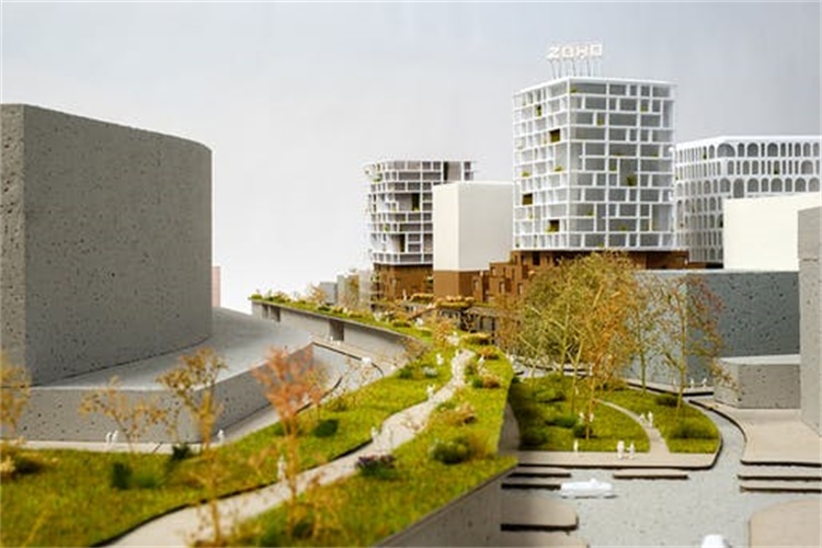 核心设计理念由三个相互叠加的居住环境组成:实验室层、土地层和城市层。ZOHO LAB将以该地区现有商业建筑的美学为基础,为创业实验、社会倡议和住房分配空间。