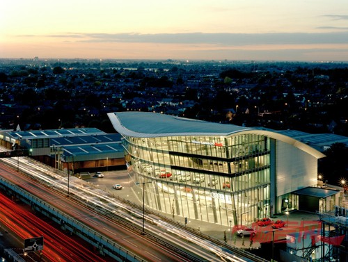 占地190,000平方英尺令人惊叹的英国新奥迪中心毗邻英国最繁忙的M4路段。此七层建筑包括三层能容纳116辆轿车的展厅,两层展览和会议场地,以及两层有32个隔间的地下车间和宽阔的停车场。