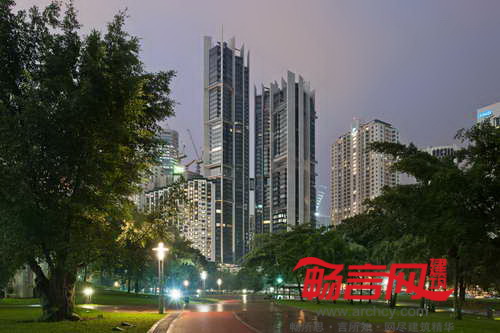 Troika位于马来西亚吉隆坡中心地带,由Foster + Partners建筑事务所设计,设计方案符合大都市高密度生活和工作的要求。项目包含三栋塔楼,层数分别是38、44和50;围绕在一个中央庭院周围,项目共包含230套住宅公寓以及办公、商铺和餐饮用途的建筑。项目建设使用了细长的预制混凝土剪力墙,能够使视野最大化,内部柔性支撑结构使住宅略微旋转,从而能够从视觉角度受益于周边的城市景观。一面巨大幕墙由低辐射玻璃构成连同阳台悬垂结构都能够有效减少建筑内部的热增量。主体结构运用了非现场建造方法,大幅度降低了木材的浪费。