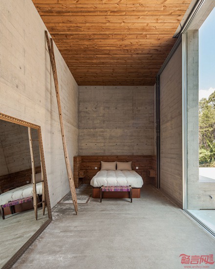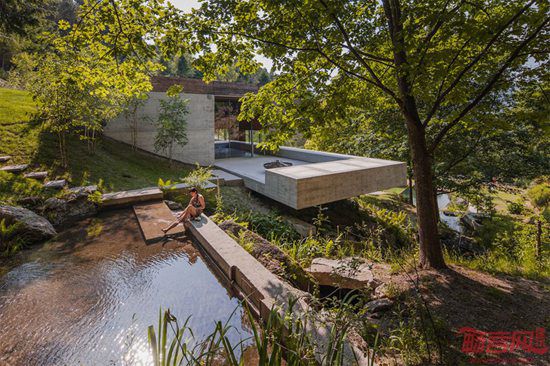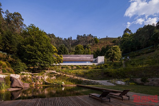 Carvalho Araujo工作室设计了位于布拉加的Geres住宅。项目坐落于葡萄牙唯一的国家公园内的一个陡坡上。此前场地上的住宅由于山体滑坡危险遭到拆除。新建筑利用山地背景,可从二层进入室内。住户拥有面向如画风景的视野,面前展开的是潺潺溪水和汇聚而成的湖泊。