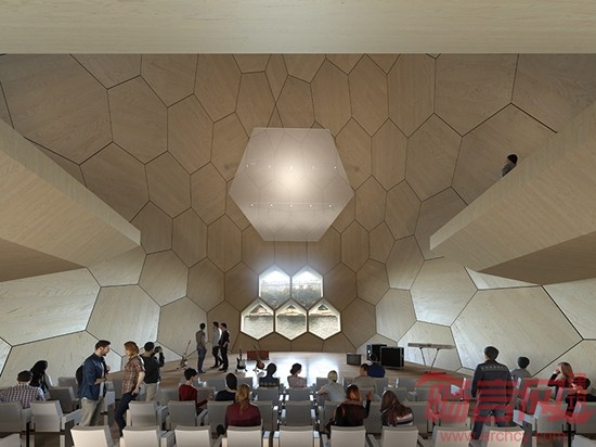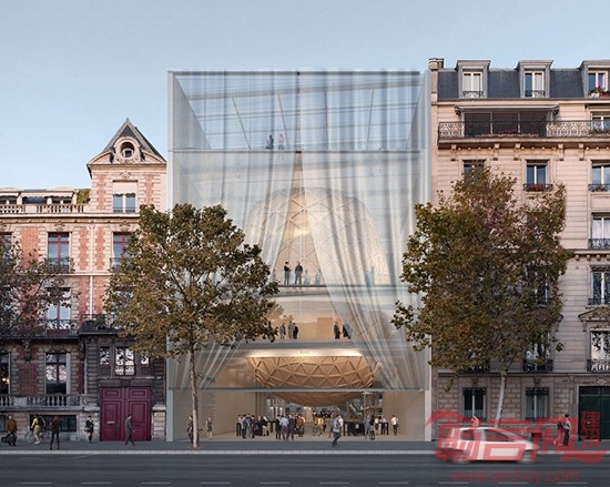 尽管有25米的限高,坂茂的设计方案还是体现了与周围建筑的和谐相融,且面向周围街道外墙为全玻璃设计。