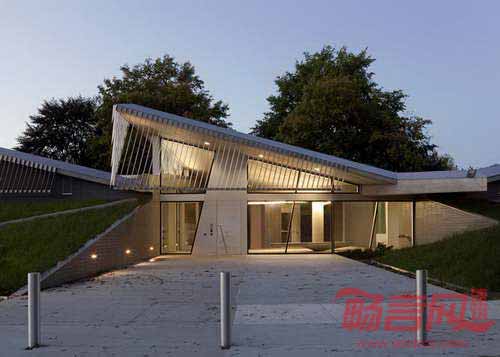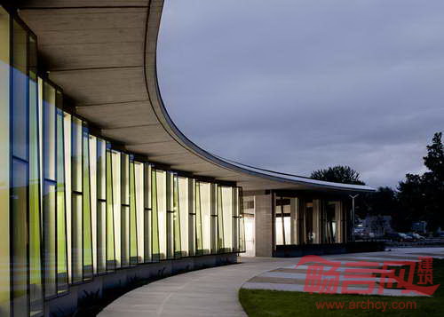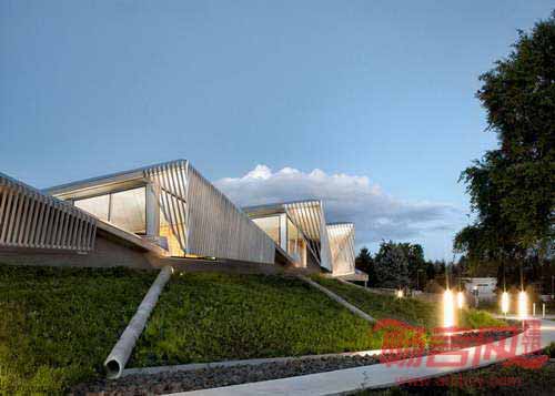 Skylab建筑事务所设计了位于美国俄勒冈州波特兰市的污水加工厂。建筑设有七片翅片结构,支撑起收集雨水的绿化屋面。Columbia Boulevard污水处理厂建于1950年,处理波特兰市的雨水和污水,目前为当地60万居民服务。Skylab建筑事务所受委托,为工厂的工程师设计新办公室和公共接待空间。单层的工厂建筑具有弯曲的平面,用于追踪太阳运行轨迹。七片翅片结构在上空形成线性序列,将建筑变成覆盖绿草的山丘,与景观完美地融合在一起。各个翅片设有集成收集系统,将雨水导向附近的Columbia Slough河道。