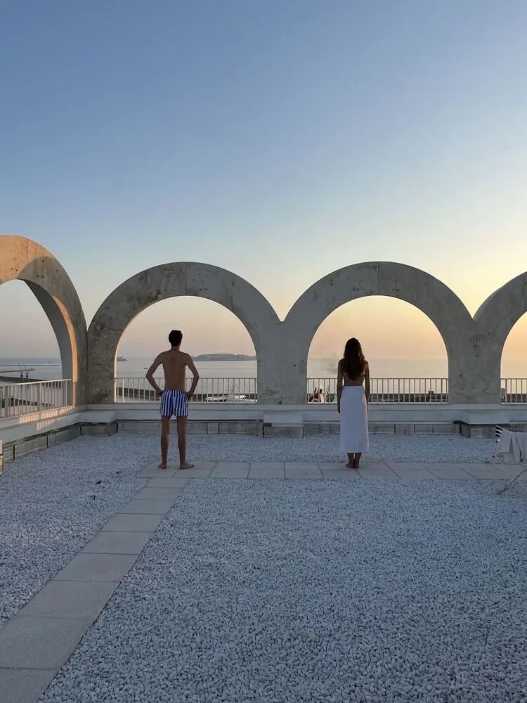 拱顶必须符合严格的规格要求,并选择在马赛附近的一个小镇就地取材、对环境影响较小的混凝土。这种混凝土装饰赋予塔楼一种特殊的树状设计,这种设计已成为作品的标志和真正的特色。圆形的拱顶柔和而独特地勾勒出景观。拱顶深 90 厘米,在保护居民免受风吹日晒方面也发挥了重要作用。