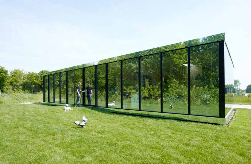 Johan Selbing建筑事务所设计了位于荷兰Almere的一座完美融入景观环境的住宅。这座私人住宅的外立面完全采用反射玻璃,反射周边景观的建筑在环境中似乎有“隐身”效果。该建筑是荷兰Almere的小型实验住宅系列项目之一。12个赢得竞赛的建筑事务所得到机会在森林的开放空地上实践各自的方案。镜面住宅的内部视线受到阻挡,确保了业主的私密性。建筑布局尽可能做到紧凑,能够适应不同生活方式要求。建筑师同业主配合,关注每个细节,保证灵活性。