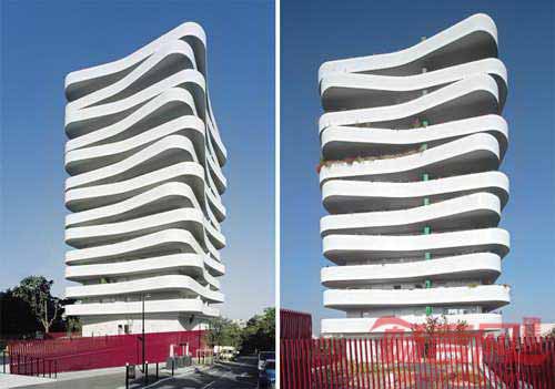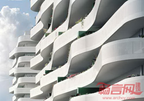 该设计赋予建筑动态特征,为住户提供充足的户外空间。