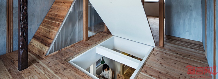 从外表看,这座日本住宅没有什么特别之处。和左邻右舍一样,只是个50多年房龄的老房子。不过,在最近一次翻新后,房屋被赋予一系列特点,包括一个“活板门”。项目是设计师为其母亲量身打造的。他听取母亲的反馈和需求,让住处完全符合其意图和舒适度要求。住宅设计简洁,设计围绕一个重点——给没有院落的阴暗房屋带来光线。