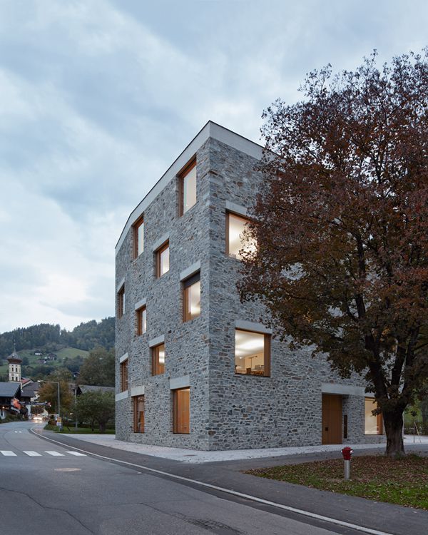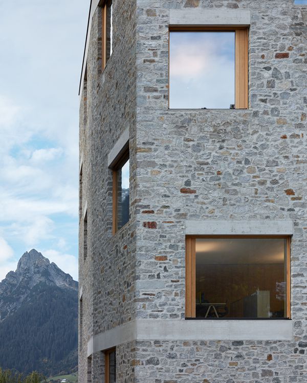Alpin Sport滑雪度假村总部位于奥地利Schruns,由Bernardo Bader Architekten事务所设计。项目设有错位的窗户,外墙覆盖了不规则的石材。办公楼还具有不同寻常的、基本方正的平面布局,每一侧均有略微凹凸的角度变化。设计师表示,这是周边传统村落中的一座强有力、醒目的建筑,新建建筑为60位员工提供了办公空间,也涵盖了教育和信息场所以及会议室。