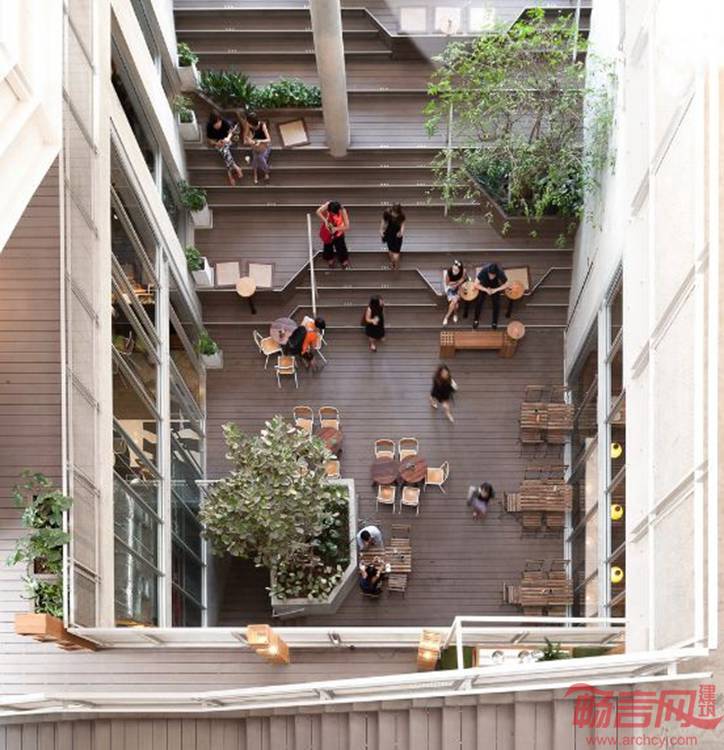 Department of Architecture设计了曼谷The Commons零售项目。项目面积5000平米,于2016年完工。和其他世界大都市一样,曼谷的生存状况和空间格局都在不断变化。曼谷人渴望拥有新的户外生活空间,其设计必须在空间有限的前提下,符合热带气候和城市密集条件要求。本项目是位于市中心的小型零售开发计划,旨在营造活跃的户外空间,让人们在一年中任何时候都能舒适享受闲暇。项目提出垂直露天公共空间的概念,这种类似建筑骨架的结构向上折叠延伸。从地面开始,项目起初是一系列台阶和融入平台、作为和小亭子的坡道。凭借建筑的三层和四层,这一区域拥有很好遮盖。
