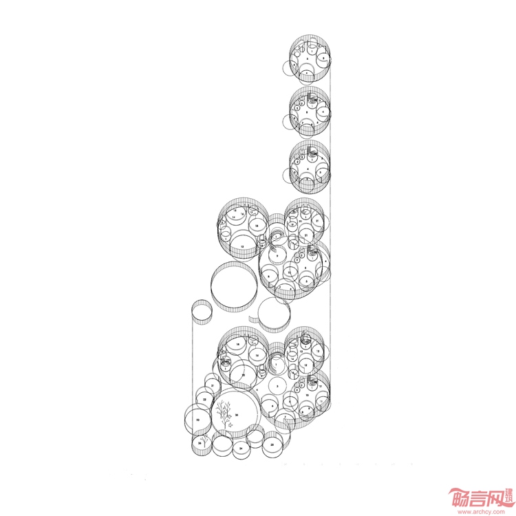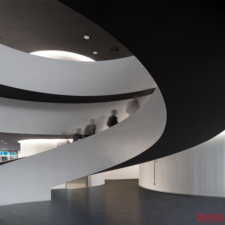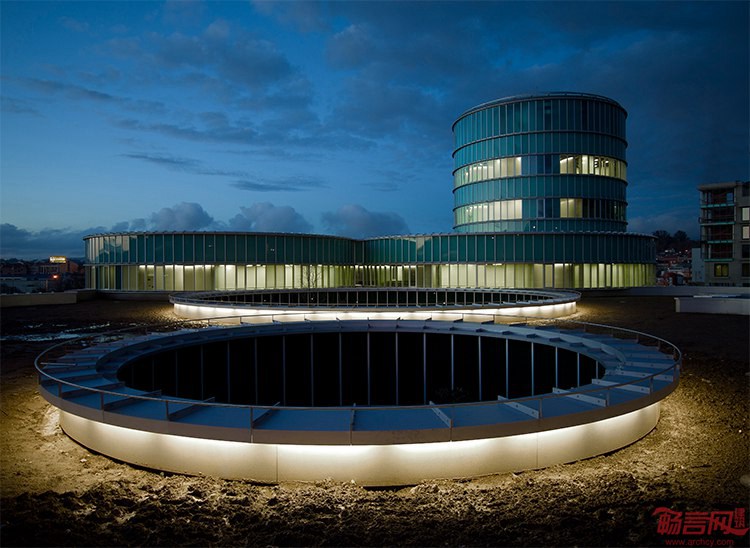 新建的Lalin市政厅是一座开放式建筑,同周边环境建立了对话,采用分散式布局,去除了拥挤感。建筑具有主空间结构,包含两层地下室和圆筒形的四层地上空间。室内部分,大堂围绕一系列圆筒单元展开。这些圆形空间均拥有各自功能,共同构成了较大的环形结构。人们可以通过宽敞的环形中庭进入建筑,入口位于同Galicia广场连通的场地南侧。