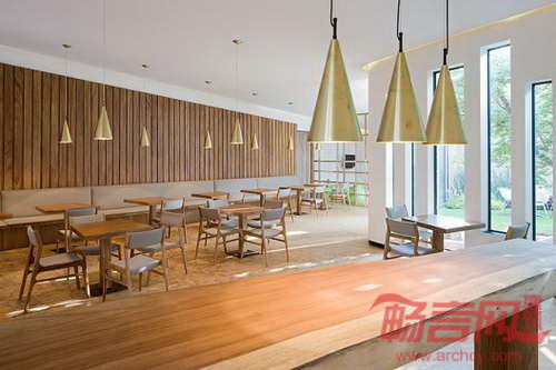 设计师首先开始设计休息室,并重点营造一种宁静、安享的氛围。空间必须是适宜人们滞留并宣泄伤感的场所。同时,空间还应当适合社交聚集,甚至逝者在重要程度方面退居第二位。为了达成这个目标,设计师将社交空间和休息室分隔开,并将花园变成休息室的延伸部分。