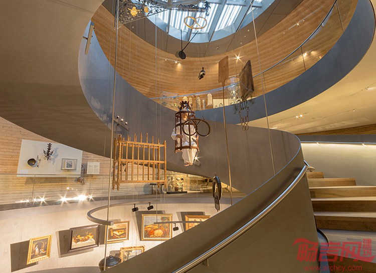Coop Himmelblau在奥地利北部完成了一家面包企业建筑。项目包含两个组成部分,分别是可用于各类活动、演讲或研习会的盒子状基座,容量为120人;以及Wunderkammer Des Brotes,一座凌驾于基座上方的两层排练空间。两个部分用充满反差的材料建造,现浇汇凝土用于底座,木质博物馆外立面覆层则是不锈钢材质。