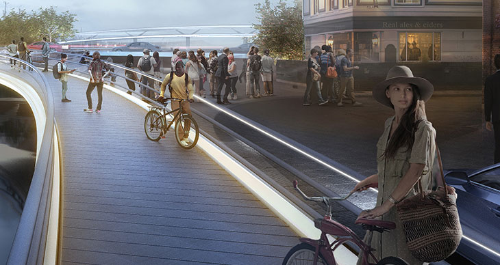 诺曼福斯特被选中设计位于英国Ipswich小镇上的两座桥梁,该镇也是福斯特著名的Willis Faber建筑所在地。该设计方案超越了其他四家公司的方案,项目将同时修复已有的船闸,以提升桥梁的连通性。新建公共空间和Orwell河上的通道将激活这片中央城市区域。