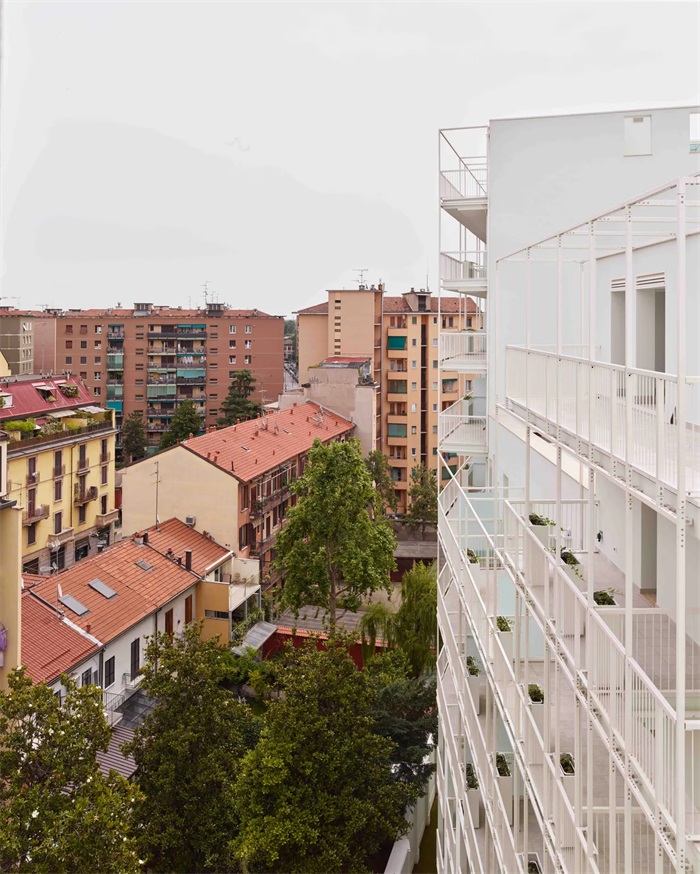 Degli Esposti Architetti完成了米兰Selene住宅项目设计。项目由两座垂直场馆组成,翼楼向街区中心延伸,三个楼梯之一延伸了该建筑十一层楼的高度。从形态类型学角度来看,该建筑是街区围墙、楼板和塔楼类型的混合体。从街道位置可通过双层通高门廊进入楼内,门廊直接通往所有楼梯井和地下停车场。这种平面容积构成了三个立面:分别是高架桥上,朝西,朝南和北向,从街道上可以通过两个大的入口清楚地看到:五层楼高度的人行道位置可以看到南立面,另外两层楼高的车行道可以看到北立面。