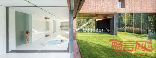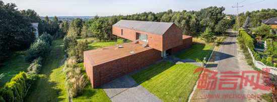 项目位于波兰南部Katowice,由建筑师Robert Konieczny设计。两层建筑具有一切郊区住宅特点,分别是坡屋面、红砖墙和宽敞的车库。然而,建筑最醒目的特点是二层进行了90度的扭转,因此盘踞在一层纸上,朝向花园。混凝土砖墙支撑起悬挑结构,一层覆盖了镜面不锈钢,反射美丽的花园景象。