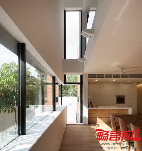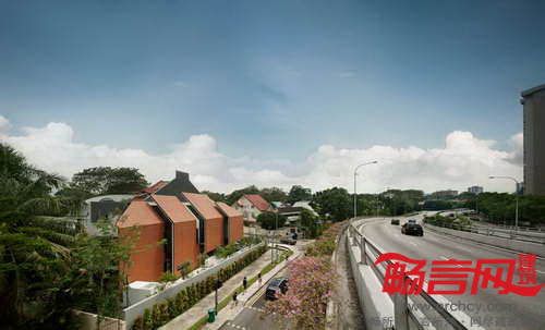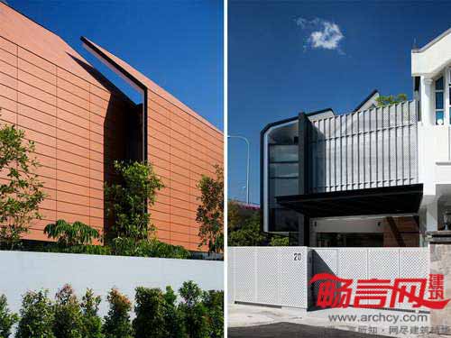 新加坡Formwerkz建筑事务所最近完成了“Armadillo住宅”设计,对其所在的街角场地的两个环境因素做出了回应——临近公路的噪音污染、住宅西面的大面积暴晒。