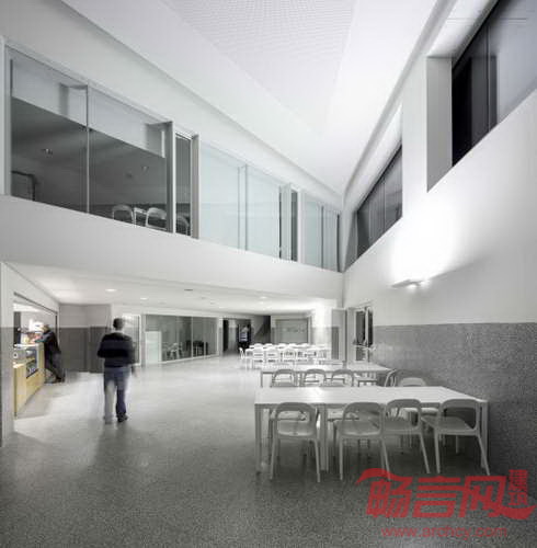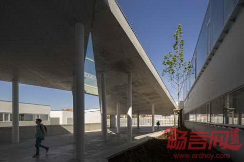 Canecas高级中学位于葡萄牙Odivelas,设计意图是诠释两种不同学习理念——传统正式学习和轻松非正式学习模式。两种模式通过不同建筑手法得到展现。已有建筑呈现出依次整齐排列的外观,略显僵硬的形式仿佛将教室塑造成“学习机器”。与之对照的事,新建建筑致力于营造公共空间中的非正式学习环境。