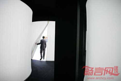 克罗地亚Brigada工作室受香烟和烟圈启发,为一个关于吸引文化的展览创造出带有光亮圆筒的房间。