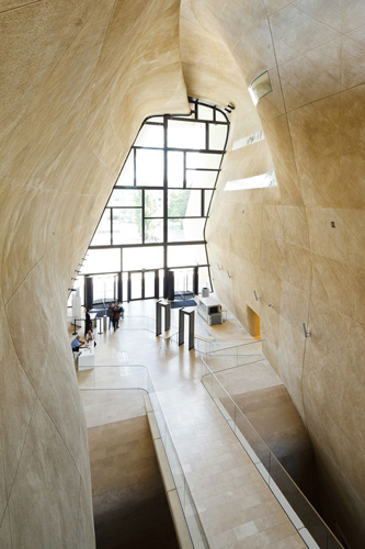 波兰犹太人历史博物馆位于华沙一处二战前犹太人聚居地的中心地带,纳粹曾将此处改造为华沙犹太人区。博物馆关注的不仅是大屠杀,还关注大屠杀试图掩埋的犹太人在波兰的800多年历史。由芬兰建筑师Ralner Mahlamaeki和llmar LahdeLma设计的博物馆有着象征性的开裂的立面,朝着波浪状的墙体打开。