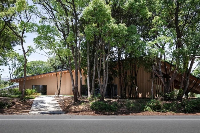 该建筑工地位于与 Kaneka 生产基地毗邻的一片荒芜的灌木丛中。设计目标是建造绿树环绕的建筑,尽可能多地保留现有树木。