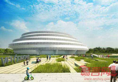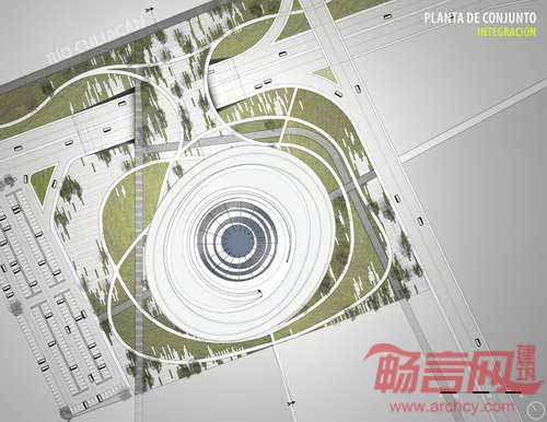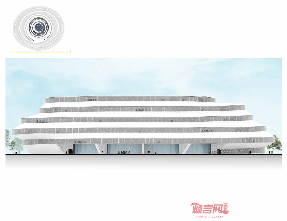 设计方案是一个螺旋上升的坡道形式,场馆设计目的是使建筑在城市文脉中能代表Sinaloa州的竞争主义精神。目前,世界范围内室内自行车场馆外部大多都是大型停车场。对于以汽车侧重汽车使用的场馆设计理念,设计师做出了回应——将体育场馆和河畔公园完美融合起来。