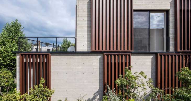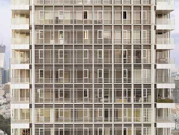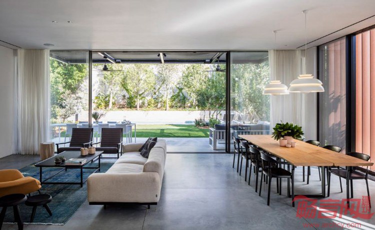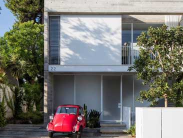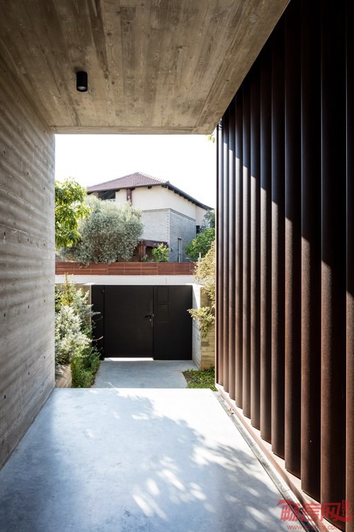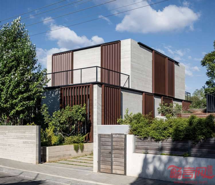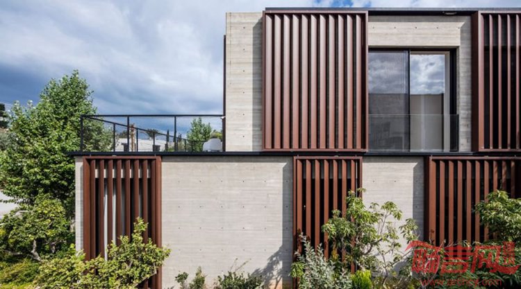 这一位于特拉维夫的混凝土住宅由Bar Orian事务所完成,带有垂直百叶窗,可以旋转挡住光线或者旋开让住户看到窗外视野。业主是一对有三个孩子的夫妇,坐落于市北Affeka社区。设计师选取简洁的外形,设计出这座两个方体堆叠,具有野蛮建筑风格的项目。上面的方块稍微缩退,营造出两侧的露台。