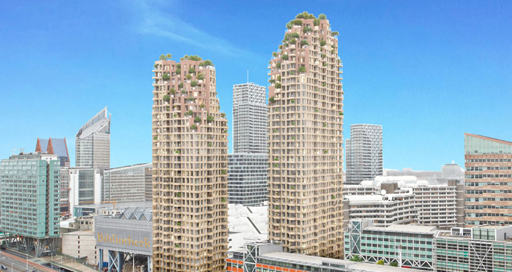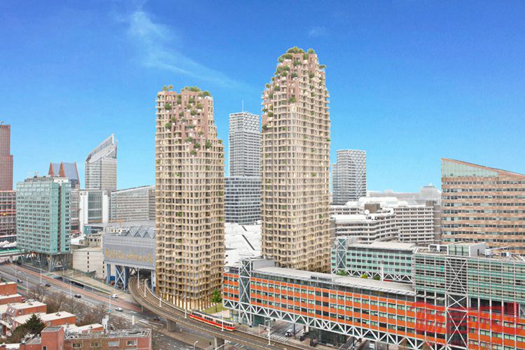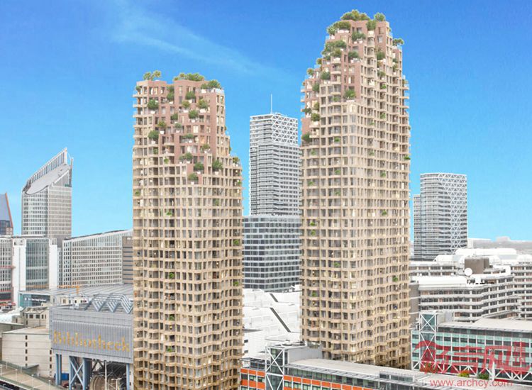 MVRDV事务所设计了位于荷兰海牙的两座住宅楼。这两座建筑涵盖了500套公寓。坐落于CBD区域,这一61800平米项目提供高质量社会住宅和私人公寓。项目包含宽敞的户外空间,人们可以欣赏北向的海景和南方鹿特丹方向的天际线。