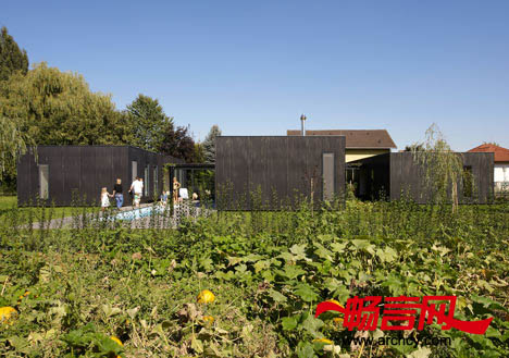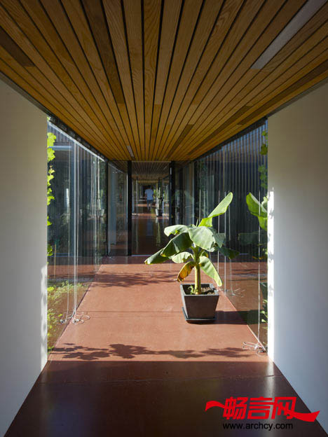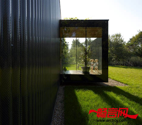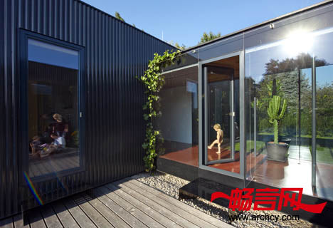 所有的生活区域都是用地热供暖。集热器和热泵则可为住宅提供热水。另外,从住宅的通道里经过时,你会依次走过几个透明和封闭的区域,这样就使行人能看到半开放的庭院和每个“集装箱“。房屋的主人是葡萄酒爱好者,所以,建筑师就在玻璃走廊的两侧栽种了葡萄,这就使房主在自己的住宅里面拥有一片葡萄园。