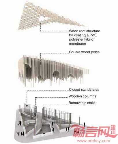 PMG建筑设计公司赢得了卡萨布兰卡可持续性集市广场设计竞赛的第二名。在巨大的户型顶棚下,空间宽敞而明亮,建筑师试图将这座北非城市的富有展现出来,众多的香料和无数色彩,诱人的香气和多彩的调料。