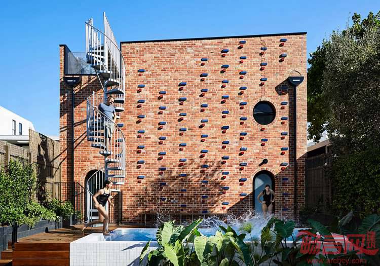 这座由Austin Maynard事务所设计的建筑位于澳大利亚墨尔本郊区Richmond。外墙设有细小的红蓝釉面砖,建筑先前曾是一个停车场。项目坐落于街角,两侧均被道路限定,红砖住所如同一枚书挡。称为Brickface,住宅是业主为其女儿而建的。设计师表示,墨尔本地产市场日益膨胀,年轻一代不但买不起房,甚至租不起离公司,学校和社区近的房子。城市也有小算盘,因为家长们会做出应对。他们利用自己房屋的后院加以改造,通常房屋正面临街,这样孩子就能在大学或者刚毕业的几年暂时住下,解决燃眉之急。