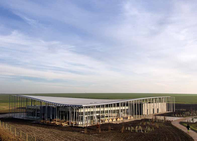 Denton Corker Marshall设计的英国巨石阵游客中心于日前向公众开放。在经历了多年商议、几经修改方案后,距离巨石环以西1.5公里外的巨石阵游客中心已完工。建筑包含三个围护结构,分别采用不同材料,位于钢制起伏屋面下方,四周是200根铁柱。最大的建筑单体覆盖了西洋栗木板,容纳了博物馆的展品。另外一座玻璃外立面建筑容纳了教育中心、咖啡厅和商店;较小的锌板建筑夹在中间,充当售票处。