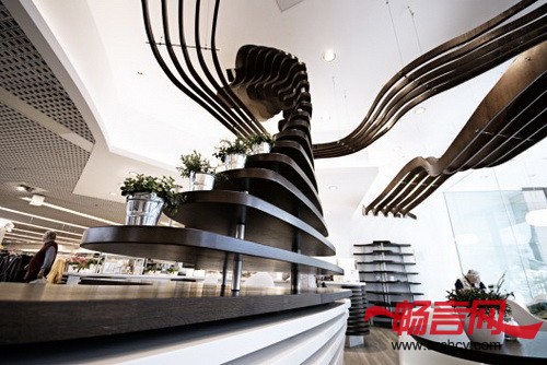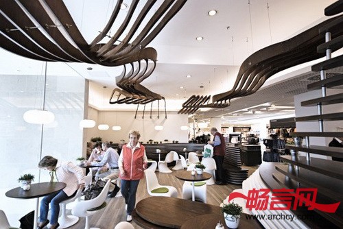 这个小餐馆位于德国奥斯纳布吕克市的LENGERMANN & TRIESCHMANN百货商场里,它是由德国的Jörn Fröhlich设计公司(位于柏林,主攻剧院和零售商场建筑的设计)和土耳其Siddik Erdogan室内设计公司(位于伊兹密尔,是一家专业的室内设计公司)共同完成的。