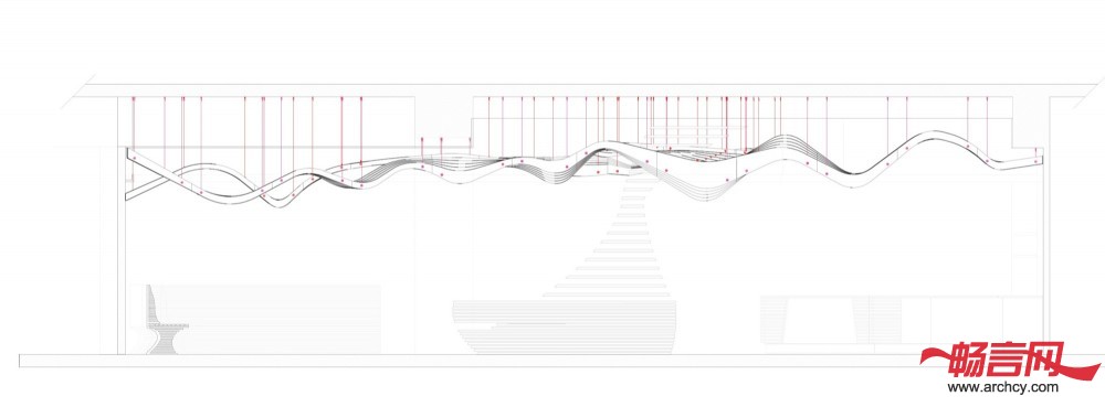 为了使这个天然材料装饰的小餐馆更显高档,设计师们为这里添加了一些白色的潘通椅和白郁金香色的桌子。此外,设计师还为这里设计了一个天花板饰物,它蔓延至整个小餐馆的100平米空间,这样,设计师们对小餐馆的设计理念全部实现。这个波浪形的天花板饰物独特的展开,而且在没有将原来的天花吊顶打开的情况下就能安装。这个饰物的设计过程非常有挑战性,但是得出的成果非常让人满意。