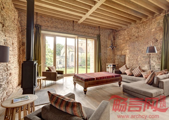 建筑师设计了能够容纳在砂岩墙壁之中的两层住宅,其间利用粘土砖填充,营造出新旧结构的鲜明反差。天花和地板采用胶合板,在城堡最古老的部分创造出起居室和卧室。
