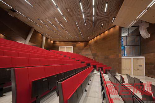维也纳经济大学礼堂设计旨在体现多种相互关系,礼堂不仅是一座建筑,同时也是促进交流的学习平台,为不同的班级活动提供场地。设计诉求具有不同层次和尺度,但都是为了实现“过程即是结果”的设计意图。设计师认为现代礼堂必须有助于维持师生的好奇心,不设置空间障碍,使幻想自由地驰骋。
