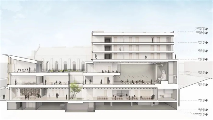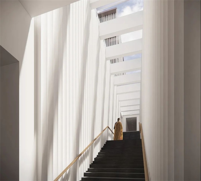 这座由 SOM 设计的寺庙/文化中心将成为旧金山市中心一个难得的可供公众静思的场所。项目建成后将包含多个教室、一座社区膳堂、室内和室外的庭院空间、一座令人震撼的佛殿,以及为来自世界各地的游方僧侣和志愿者们配备的宿舍等设施。