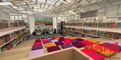 墨西哥瓜达拉哈拉国际书展智利馆设计方案由DAW建筑事务所设计,包含了巨大的书架,方便参观者找寻和识别。设计师构想出“开敞房屋”的设计理念,智利主题展览会将设在室外区域,主要包含了一个装饰基底和木质甲板。