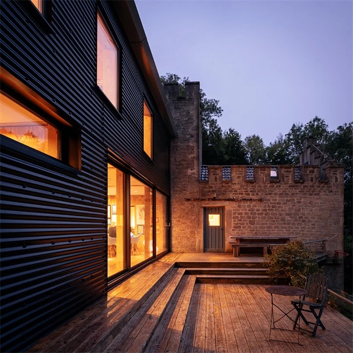 “月光”最初延伸部分是工作室最早的建筑之一,由设计师亲自搬运建材,由于场地没有车辆通行,不得不将材料沿着陡峭的林地前行600米。自2002年来,在保温和气密性方面发生了很大的变化,设计师试图证明现有房屋的未来,使其尽可能降低能耗。