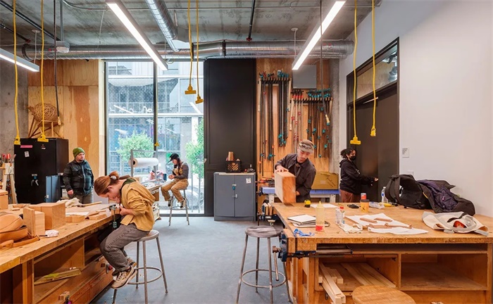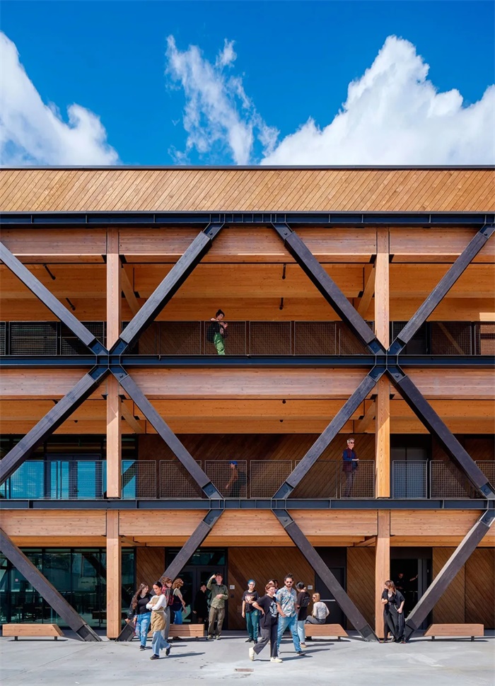 新建筑的混凝土底层是一个工作坊中心,学生们可以在这里的室内外空间进行高强度的艺术创作实践和制造。