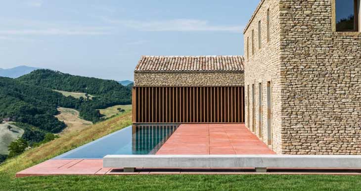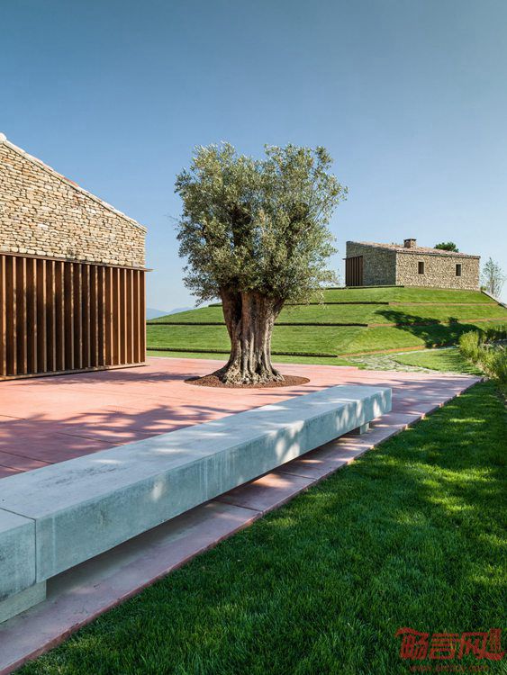 意大利GGA工作室对Marche一座老旧的山顶建筑实施了改造。AP住宅位于亚平宁北部山区,所在城市Urbino拥有城墙。住宅坐落在当地最高的山峰之一的顶部。场地上曾建有乡间隐室,年代可追溯到中世纪。设计师选择将新建建筑树立在古老的遗址上方,通过山下隐藏的地下层连接二者。设计师表示,住宅核心自成一体,在景观中营造了焦点,而新建筑和历史分层结构间的共情对话也由此恢复。