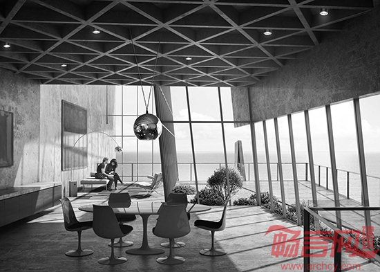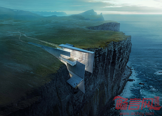 建筑师Alex Hogrefe设想了一座切入冰岛的某个偏僻崖壁的隐居寓所,以此作为建筑透视课程系列的一个示例。通过这项设计,Hogrefe演示了一些成像技术,重点在于光线、纹理和“氛围”。