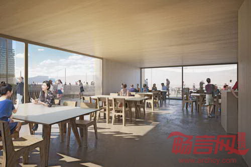 作为首个确定参与2015年世博会的国家,瑞士馆近日公布了方案,重点强调世界食物资源的短缺现状。瑞士馆设计公司是Netwerch Architektur,临时结构包含五个独立塔楼,每座都提供游客可带走的瑞士当地食物。然而,食物供给是有限的,意味着获得多余食物的游客剥夺了其他人获得食物的机会。瑞士馆面积达4443平米,将工业元素同瑞士本地风格的木质露台和人自行屋顶相结合,令人联想起瑞士乡村住宅。游客通过上升的坡道来到中央底座,迎接大家的是游客问讯处和售票处。瑞士馆成为音乐会、商店、餐饮设施的综合平台,VIP休息室也被包含在场馆中。