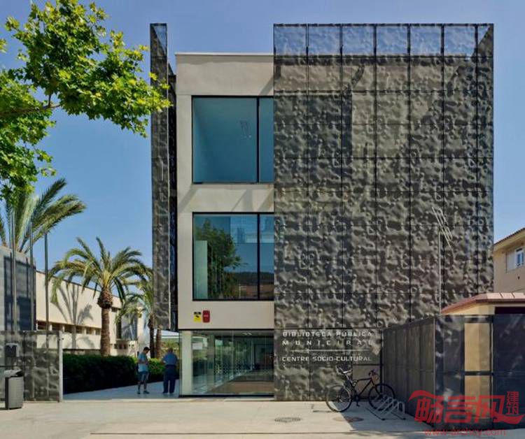 Singular Studio设计了西班牙Alicante公共图书馆和社会文化中心。项目坐落于Javea临近港口的滨海社区,因此在实施一系列建筑方法后,设计师最终采用了和海洋相关的理念。金属板具有三维形象,模仿了海平面的运动。外立面的处理如同覆盖整个结构的轻盈的建筑表皮,在不影响一层平面的条件下,彰显了结构的轻质。