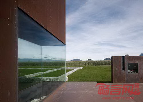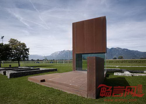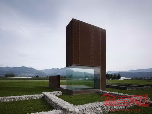 Marte Marte Architects建筑事务所设计了位于奥地利西部小镇Brederis的一座铁锈色建筑。建筑目的是为前往古罗马挖掘遗址的游客提供指引。建筑师表示,“项目是为了让人们从数公里之外,可以分辨挖掘遗址的方位。”这座建筑位于Brederis古代交通道路岔口处,建在两座古罗马住宅之间。古老的建筑遗址依稀可辨,而新建建筑成为地面上显眼的地标。