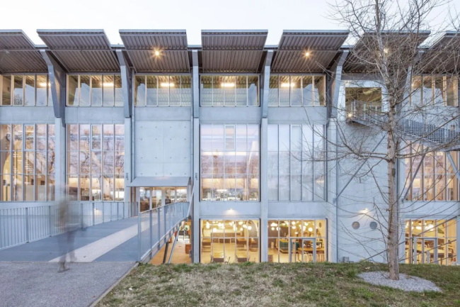 为打破传统看台将垂直交通设施(如楼梯、电梯等)内置于结构与看台层深部的常规设计模式,本项目将通往座席的楼梯与步道设置于建筑外部。这些设施依托纤细如蛛网的金属结构,在公园树木的枝叶间蜿蜒攀升。服务于入口区域的广场与堤岸,因周边丰富的建筑景观与植被层次而充满活力,同时透过看台窗户隐约可见的内部活动场景,进一步构建起体育场与城市之间的有机联系。此举旨在让看台具备承载多样化活动的潜力,打造可供人们聚集、举办节庆活动与会议的场所,从而将其使用场景拓展至橄榄球赛事之外。