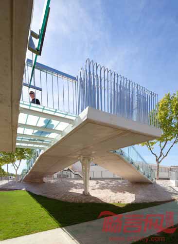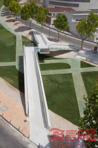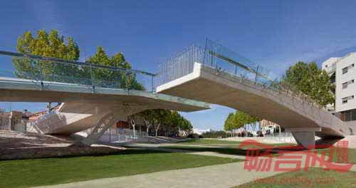 巴伦西亚Salvador Ivorra一道雨水渠上架起了一座新桥,桥梁有一个浪漫的名字——亲吻桥,指的是桥梁的两部分轻柔相接。水渠两侧各有一种不同的跨越方法,形成了别具一格的边界形式。