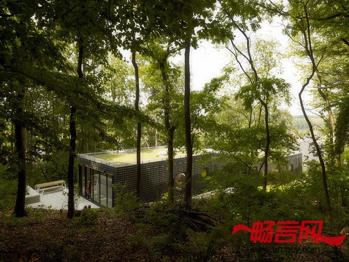 “因为住宅的位置在比利时山区的一个小村庄Vlaams Brabrant,它地处林区,环境十分静谧优美,所以,这里需要的是一个不扎眼的建筑,而且建筑应该融入到 周围环境里去。”dmvA建筑事务所的设计师说。