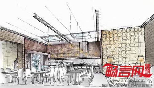 道路旁边的中空混凝土块和草坪对原先严重的热岛效应起到了消减作用;绿色植物的添加使项目变成了类似公园的行人聚集点,这在以往的曼哈顿该区域并不存在;咖啡馆的内饰保留了原先的材料板,屋顶的供暖管道经过了抛光和清洗,暴露在人们的视线中;同时,项目还设置了一个木质屏风以及两个天窗,以增加自然采光。