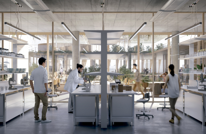 设计项目包含两个建筑。UPF是这两座建筑中的第一座,总面积为 7,300 平方米,共三层楼高。该建筑的目标是在未来成为实验科学、社会科学和人文学科的研究人员的交汇点,他们将在行星健康、复杂系统和数据科学等领域开展跨学科项目。
