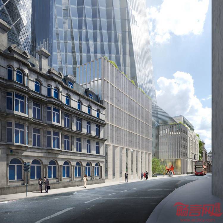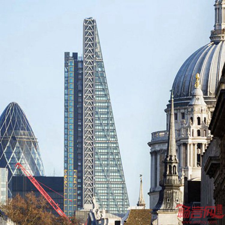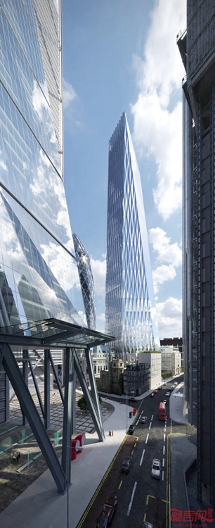SOM公布了伦敦一座56层大厦的设计方案。建筑带有倾斜玻璃外立面,与一旁由Rogers Stirk Harbour设计的“奶酪大厦”相似。London and Oriental地产公司提供的图片显示,该大厦占据了一块六边形用地。项目位于Leadenhall街100号,新建建筑临近Leadenhall大楼,后者由于外观被昵称为“奶酪大厦”。本项目提供11万平米办公和购物空间,公共广场设在临街一侧,与圣安德鲁井下教堂相邻。